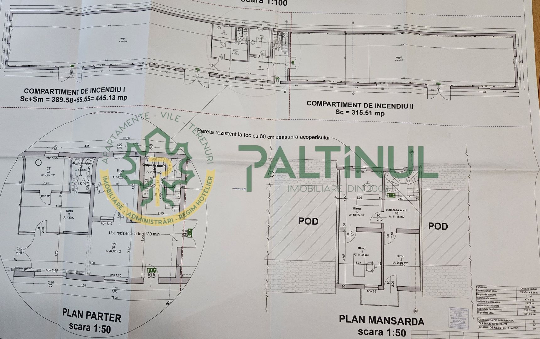 Parter: 2 încăperi generoase, 1 birou, 2 grupuri sanitare, vestiar, cameră tehnică